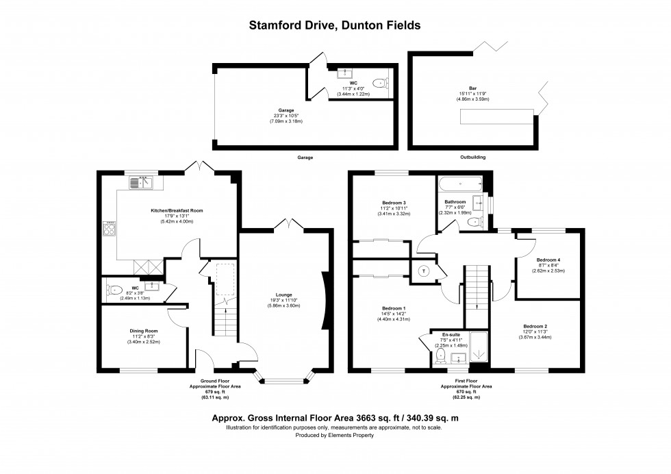 This four bedroom executive family home in sought after Dunton Fields development with large block paved driveway leading to detached single longer length garage with outside cloakroom, is approached via the main hallway leading to the Lounge, separate dining room/study cloakroom, kitchen/Family room, under stairs storage cupboard to the ground floor, stairs leading from the hallway to the first floor, with four double bedrooms and two bathrooms.
