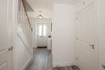 Stairs leading from the hallway to the first floor with under stairs cupboard.